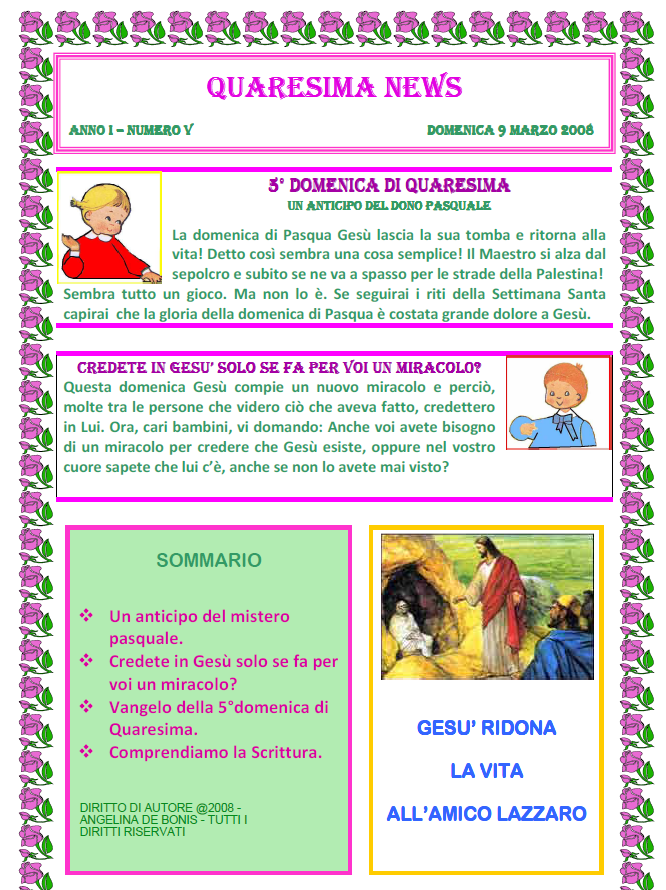 QUINTA DOMENICA DI QUARESIMA